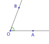 Dans l'exemple ci-dessus, on a représenté la bissectrice par une demi-droite divisant en deux parties égales l'angle ∠AOB déterminé par les demi-droites OA et OB et qui est inférieur à 180 degrés.