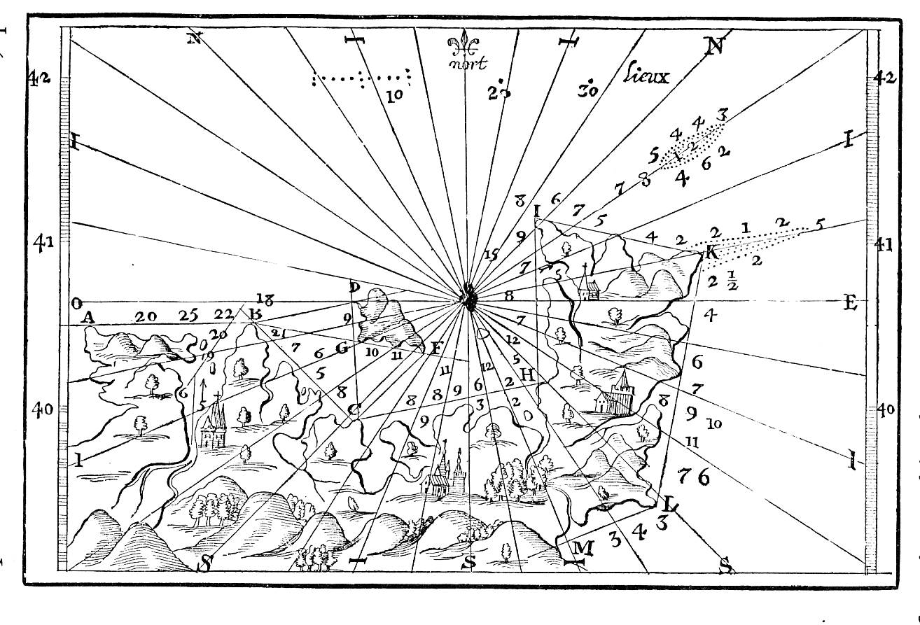 (bâton de Jacob, baculum) ![]() (Jacques de Vaux, L'usage de l'arbalestrille, MS f.fr 150, BN Paris) Traité de la marine et du devoir du bon marinier Correction de la boussole ![]() (Oeuvre de Champlain, t. I, Québec, 1870, p. 422) Tracer une carte à partir de rien ![]() (Oeuvre de Champlain, t. III, Québec, 1870, p. 1352) |