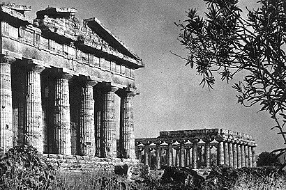 Le Temple de Poseidon (v. 460 av. notre ère) et la Basilique (v. 550 av. notre ère), Paestum, Italie.Janson, H.W. History of Art, Printice-Hall, Englewood Cliffs, N.J. et Harry N. Abrams, Ne York., 1974 (18e imp.), p. 95.