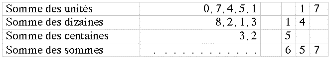 3) 5 – 7 étant impossible, faire 65 – 7 ->58.