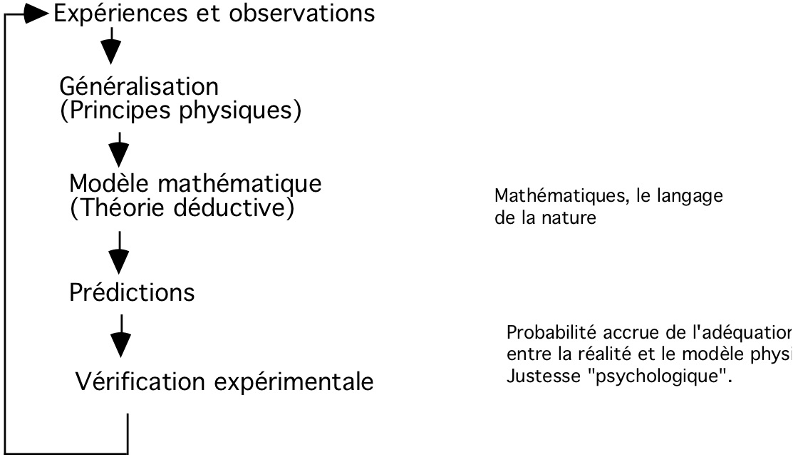 La vision mécanique de Newton va plus loin que celle de Galilée. En effet, elle recherche la forme la plus économique possible, le mot économique étant pris au sens de minimiser le nombre de lois fondamentales et d’axiomes sur lesquels repose le modèle. Les mathématiques sont avant tout le langage des modèles et non pas celui de la nature. Au fond, nous ne connaissons pas la nature, mais seulement les modèles qui nous permettent de prévoir certains de ses comportements. De ce point de vue, Newton est, jusqu’à un certain point de vue, un platonicien. La seule connaissance accessible aux hommes est celle des modèles, modèles qui n’existent pas dans la nature, dans le monde réel. Ces modèles, idéalement mathématiques, ne participent-ils pas aux Idées de Platon?