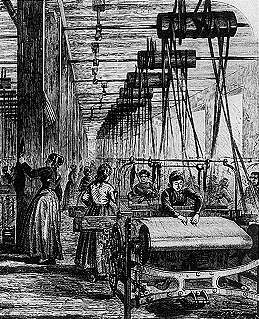 Révolution industrielle. Fabrique de textile, milieu du XIXe siècle.Craig, A.M., Graham, W.A., Kagan. D., Ozment, S., Turner, F.M., The Heritage of World Civilizations, Combined Edition, 4e édition, Upper Saddle River, NJ : Prentice Hall, 1997, p. 729.