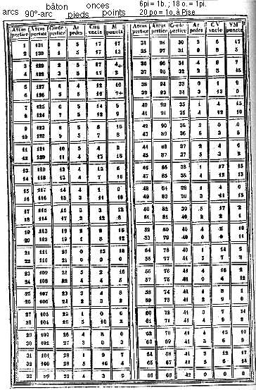 Table des cordes de Leonardo de Pise (Practica Geometriae, 1220), Katz, Hist of Math, p. 298.