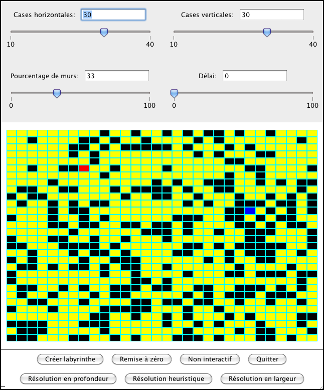 le labyrinthe, sauf si on a cliqué sur le bouton "Non interactif", qui ne