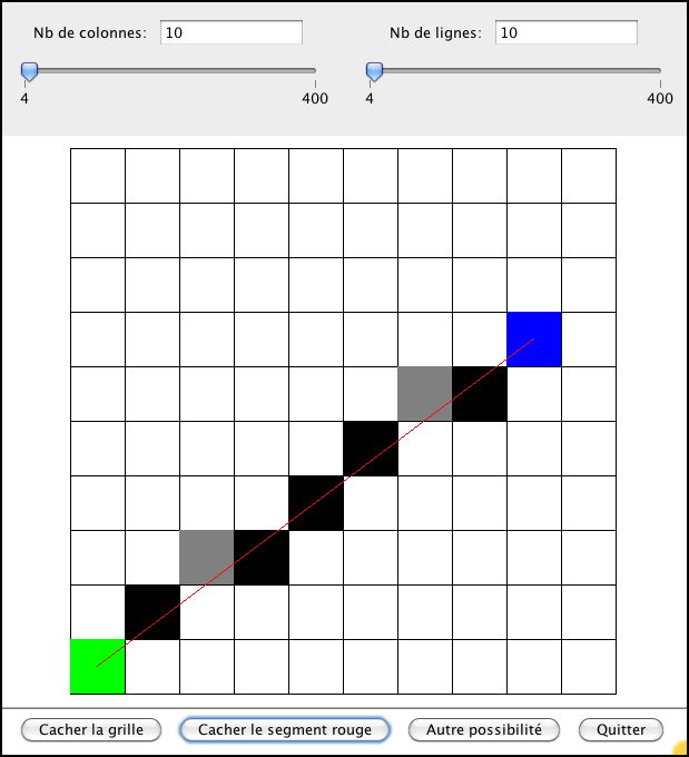 segment sur un écran fait de pixels carrés. L'algorithme utilisé colore